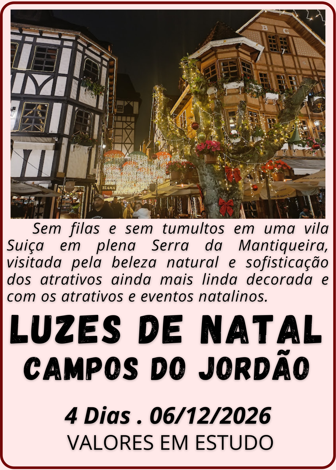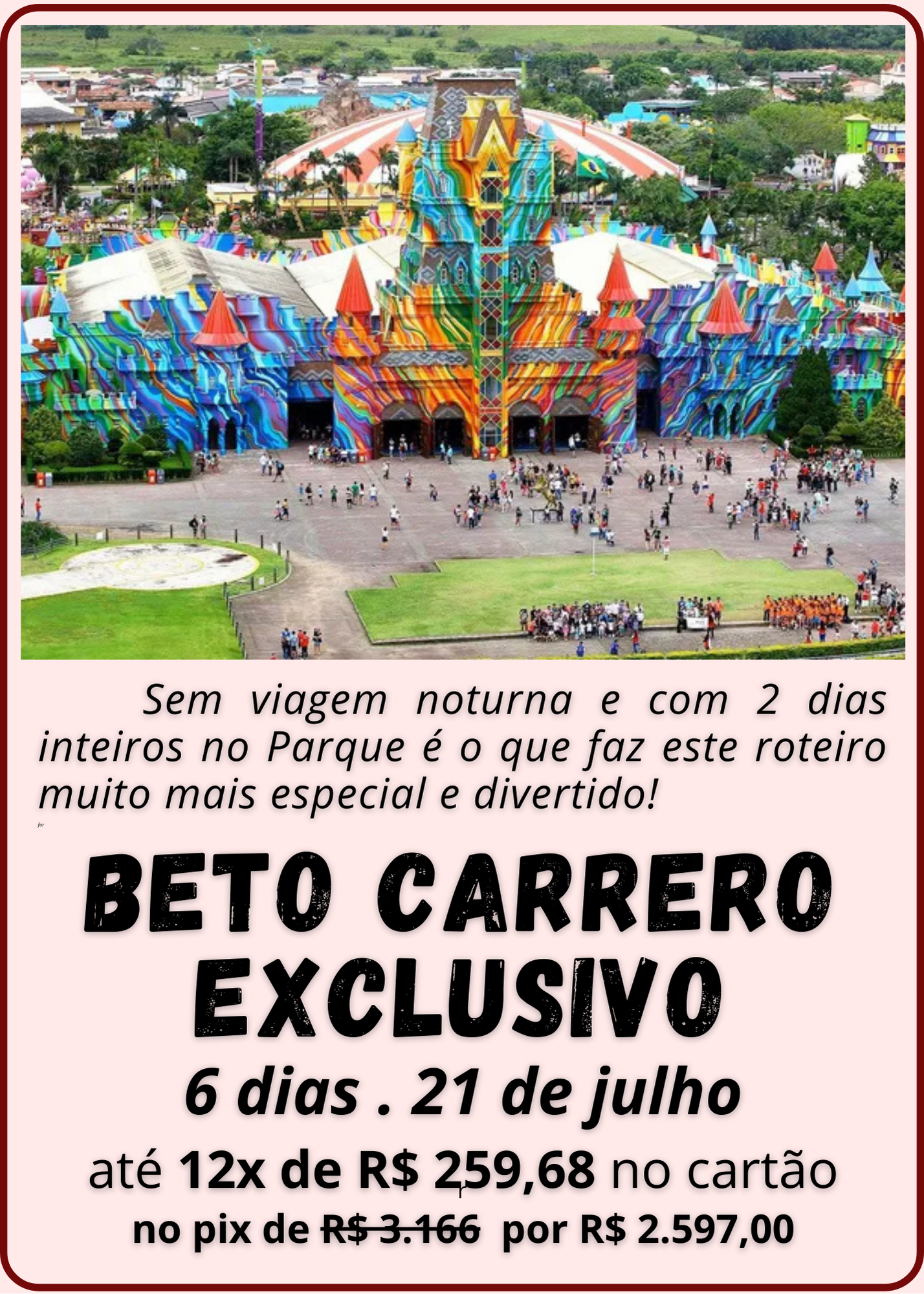 Para conseguir os melhores preços, recomendamos que você reserve seu pacote com antecedência, especialmente em datas de alta temporada, como férias e feriados. Consulte nosso site, ou se preferir entre em contato com a nossa equipe para encontrar ofertas vantajosas para o roteiro que você deseja.