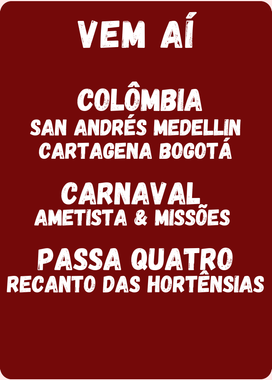 Em geral nossos pacotes de viagem incluem transporte turístico, hospedagem, café da manhã. Cada destino pode ter serviços específicos, confira os detalhes na página de cada pacote ou se preferir entre em contato com nosso time.