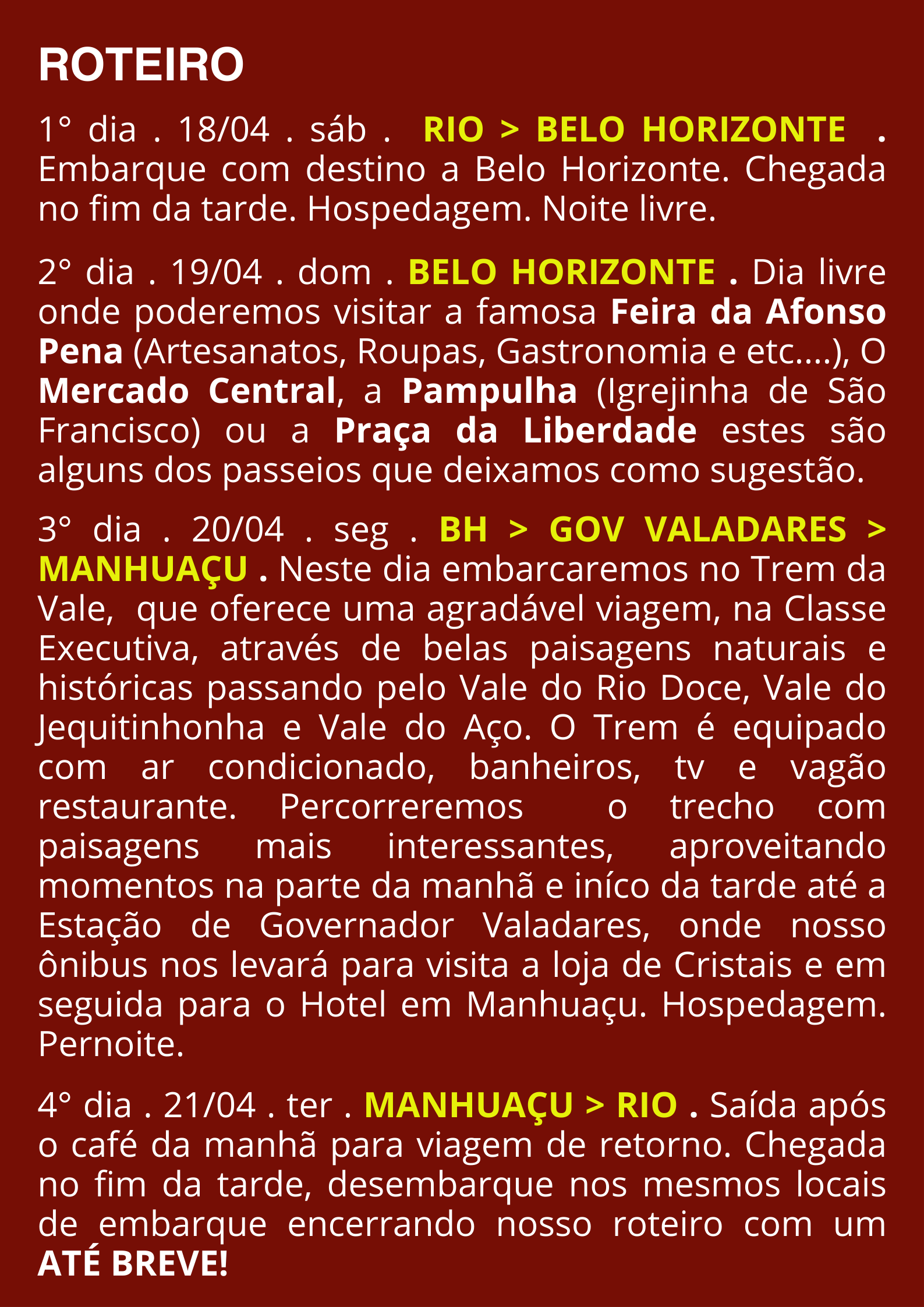 PASSEIOS DE 1 DIA